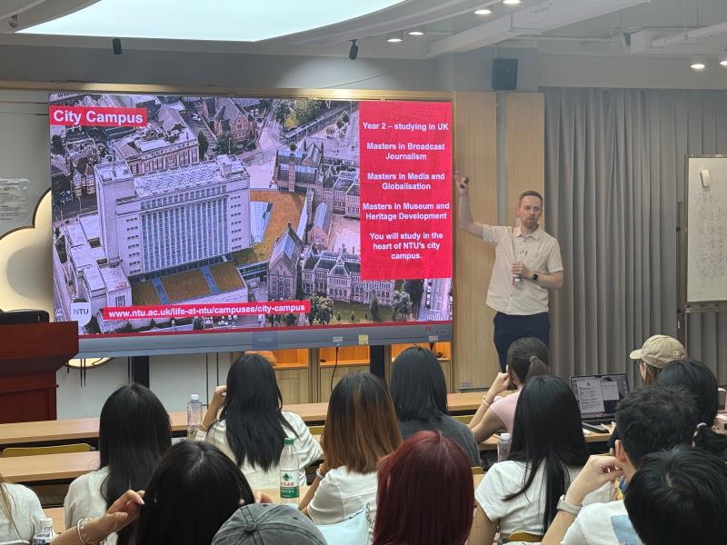 英国诺丁汉特伦特大学Richard Hunter教授对英方合作高校进行了介绍和培养说明。通过丰富的图文展示,Hunter教授生动呈现了英国诺丁汉特伦特大学的学习氛围与校园生活,进一步增强同学们对学院中外合作办学模式和国际化教育资源的直观感知,也方便了同学们对自己未来方向的权衡。