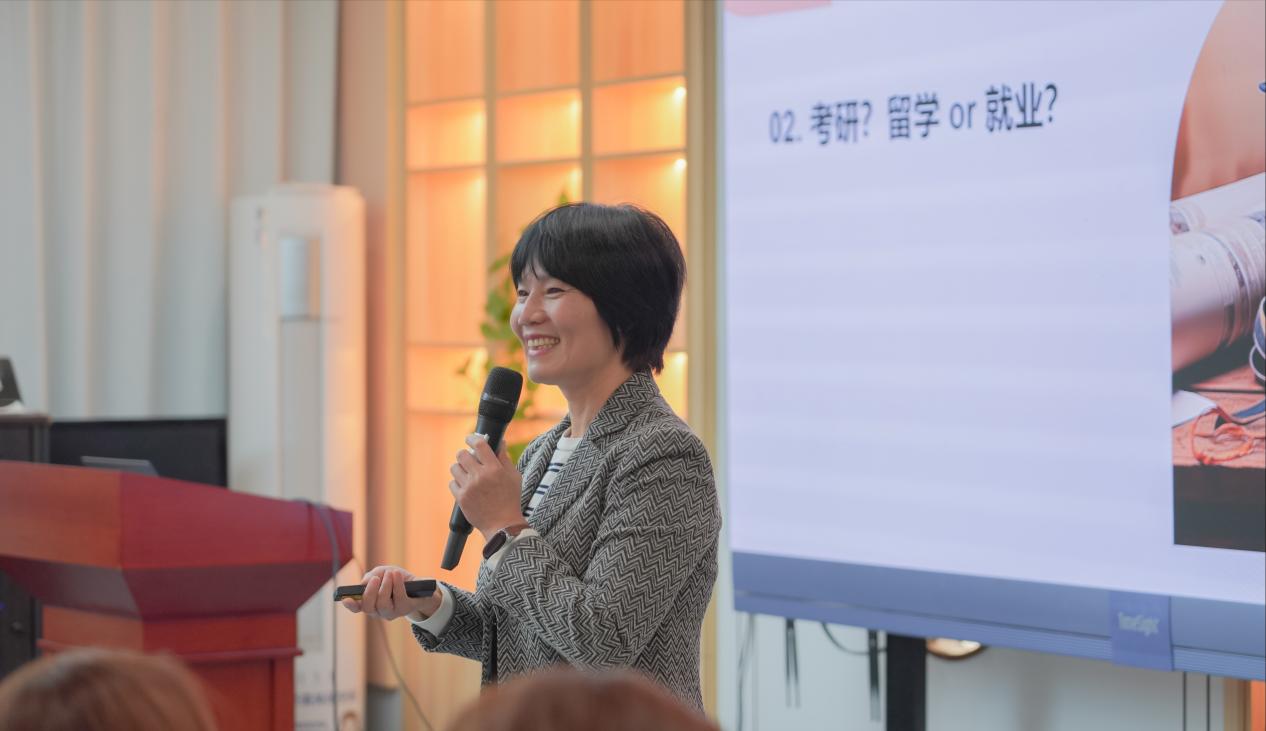 在全球化背景下,冯云老师指出,拓宽国际视野已成为当代青年提升个人竞争力的关键路径。她认为,面对全球化和数字化的时代浪潮,同学们应主动了解世界、拥抱多元文化,在学习与实践中培养开放思维与跨文化沟通能力。“希望同学们留学不只是学知识,更要锻炼适应陌生环境、解决跨文化问题的能力,这些才是长期竞争力的核心。”冯老师提示同学们,职业规划应与行业趋势紧密结合,“只有了解行业需求、不断完善自我,才能在求职时更有底气。”