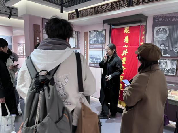 在陈列馆讲解员的引导下,同学们系统了解了台湾民主自治同盟(简称台盟)的创建背景与发展脉络。据介绍,台盟于1947年11月正式成立,是由台湾省人士为主组成的社会主义劳动者、社会主义事业建设者和拥护社会主义爱国者的政治联盟,是接受中国共产党领导、同中国共产党通力合作的亲密友党,是中国共产党领导的多党合作和政治协商制度中的中国特色社会主义参政党。自成立以来,台盟始终坚定接受中国共产党的领导,积极投身新民主主义革命,坚决支持台湾人民的反帝爱国民主斗争,与中国共产党同心同德、携手共进,参与了中华人民共和国的创建为新中国的建立作出了重要贡献。新中国成立后,台盟作为参政党,主动参与人民政权和人民政协工作,持续推动盟员及所联系的台湾同胞投身两岸经济文化交流,凝聚团结奋斗力量,在建设中国特色社会主义、推进两岸关系和平发展、助力祖国统一大业和中华民族伟大复兴的进程中发挥着独特作用。