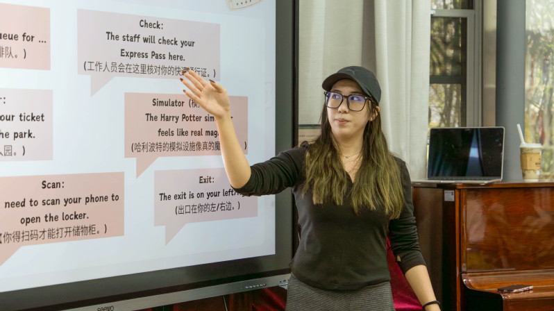 紧接着,主持人馨妤带来了一场生动的主题小课堂,带领大家“云游”游乐园,学习游乐园常用词汇与表达。