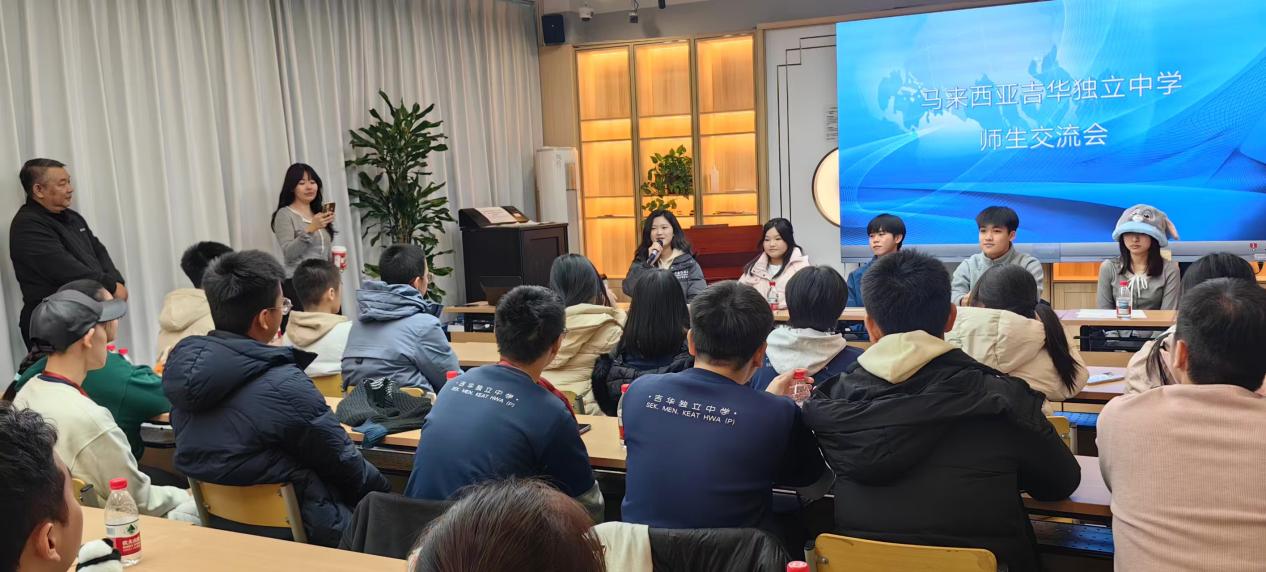 (通讯员 蔡静 摄影 李可欣 蔡静)2025年12月12日上午,马来西亚吉华独立中学“2025年筑梦中国—北京天津游学团”到访我校开展交流参访活动。游学团由该校升学辅导中心主任蔡福花带队,包括事务处副主任、家教联谊会代表、家长及学生共40余人。境外学生事务中心在一站式服务大厅举办师生交流会,热烈欢迎远道而来的客人。