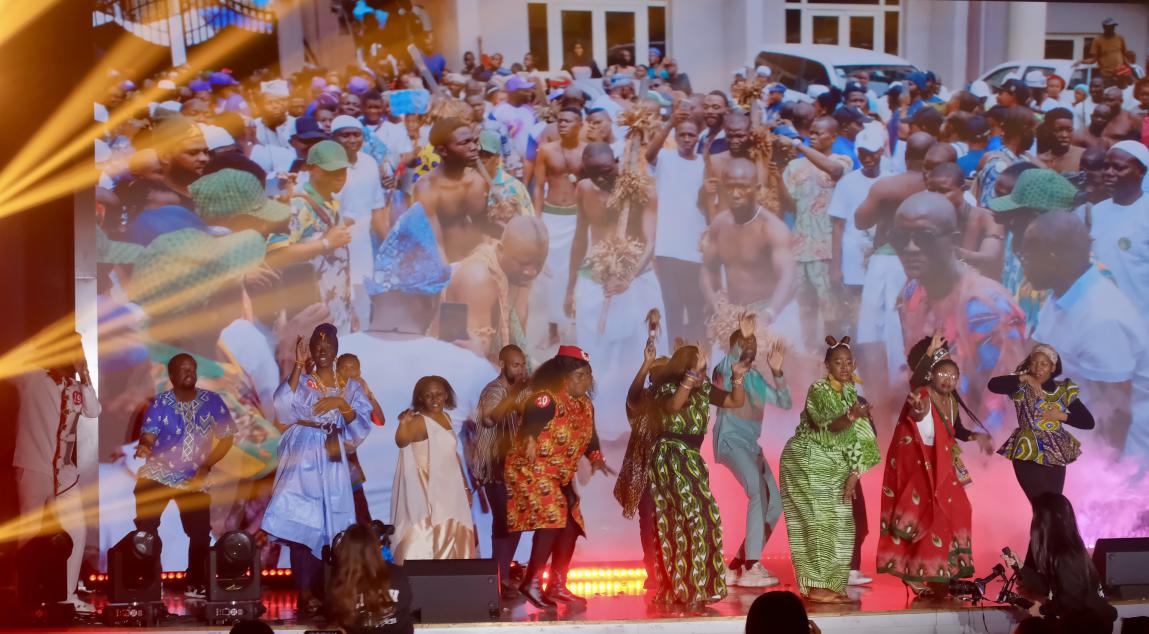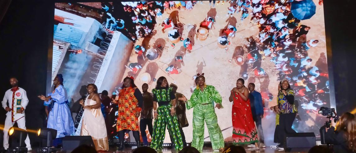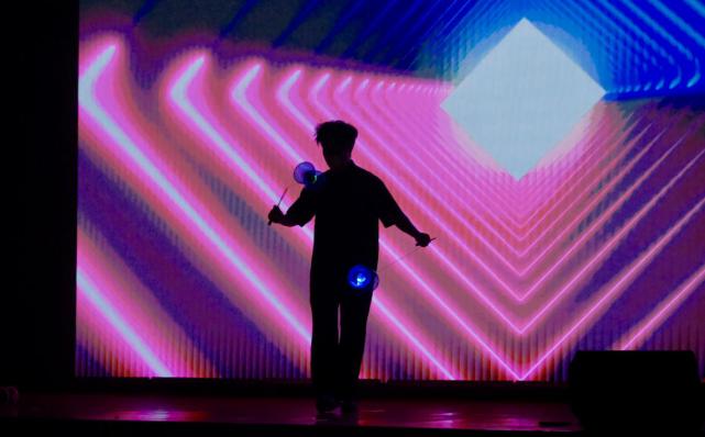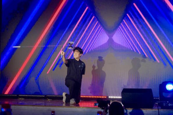 舞台上,文化交融的创意处处绽放。DE舞社带来的嘻哈舞蹈《TAP》,以808贝斯旋律混搭布鲁斯吉他,展现了中国青年的动感活力;中国学生高嘉懿同学演绎的京剧《淮河营》选段,以马派潇洒唱腔重现西汉传奇,让国粹艺术焕发新彩;马来西亚学生陈绫轩的《扯铃》表演,将传统空竹技艺与现代光影效果巧妙结合,旋转的铃体勾勒出一场“力与美”的动态对话。舞蹈《无界》成为晚会的高光时刻——中国的花腰傣舞与西方的斗牛舞、牛仔舞同台交织,马来西亚学生黄家萱与中国学生王雨珊以舞步演绎“东方韵律与西方奔放的相遇”,生动呼应了“无界”主题。晚会的压轴表演由来自非洲8个国家的同学们共同呈现,他们以热情的舞蹈、绚丽的民族服饰、自信的潮流风采和纯粹的文化感染力,让本届Gala Night在高潮中落幕。