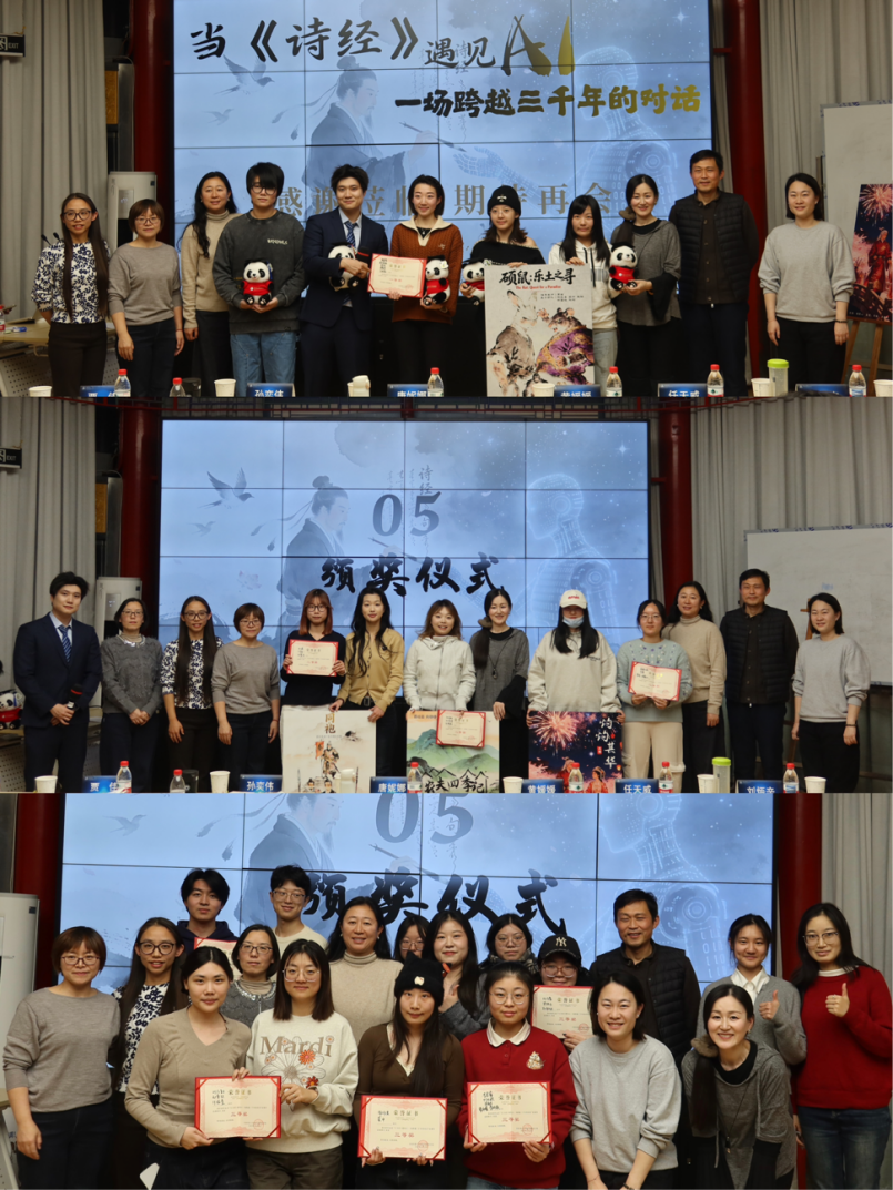 (通讯员 魏铭 摄影 李思睿 摄像 龚申 付文钦 视频剪辑 杜雨欣)AI为笔,影像为墨,2025年12月27日下午1时,以“当《诗经》遇见AI:一场跨越三千年的对话”为主题的《视听语言》结课展映活动于学院八角楼顺利开展,展示了国际传媒教育学院2025级新闻与传播专业硕士同学们的学习成果。到场嘉宾包括国际传媒教育学院副院长唐妮娜,央视导演孙奕伟,中国社会科学院大学新闻传播学院副教授黄媛媛,国际传媒教育学院教学办主任任天威,研究生教学秘书杨君丽、班主任刘炳辛,课程任课教师副研究员贾佳。2025级新闻与传播专业硕士生张韬担任本场活动主持人。