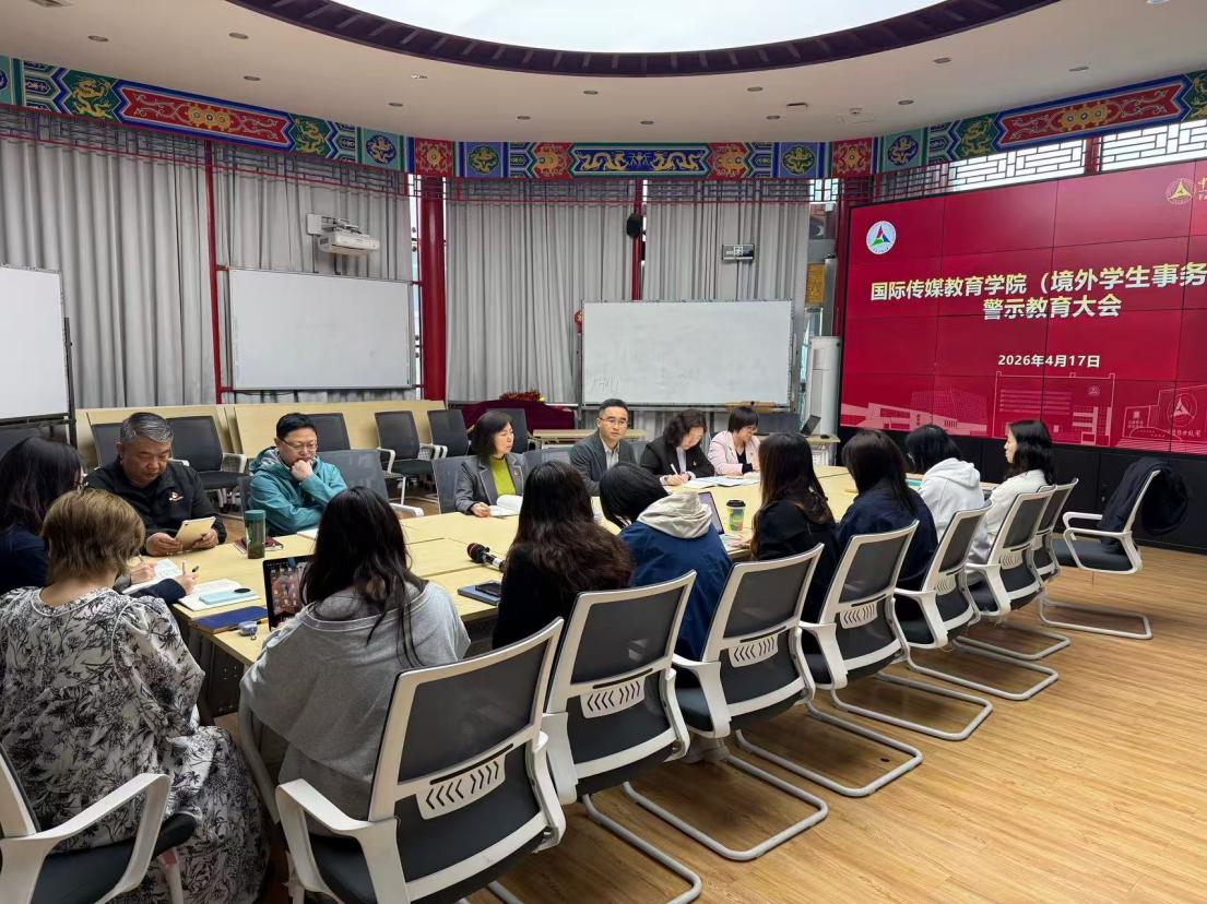 (通讯员 摄影:宋梦茜)4月17日,国际传媒教育学院(境外学生事务中心)警示教育大会在学院八角楼召开。学院党委书记龙俊主持会议,党委副书记、纪委书记王娟传达上级及学校相关文件精神,全体教职工参会。