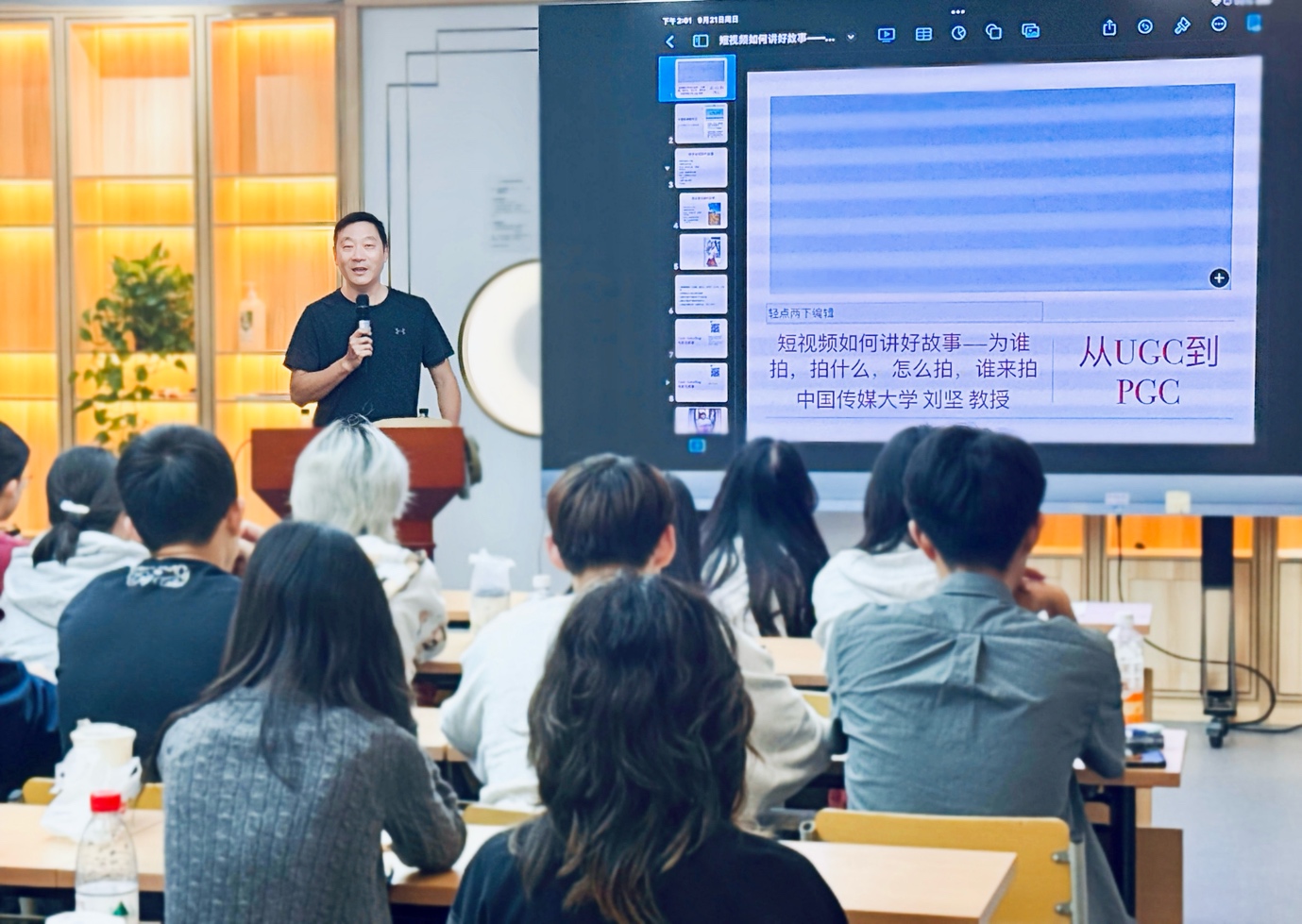 (通讯员 尹梦 摄影 李晓莹 李丽珠)为帮助境外新生深入了解北京的历史底蕴,感受中华文明的独特魅力,9月下旬,境外学生事务中心组织2025级全体境外本科新生开展以“探访北京中轴线”为主题的入学教育系列活动。此次活动创新采用“专题讲座引领、实地行走感悟”的模式,引导同学们沿中轴线南、北线路进行深度探访,并通过短视频记录古都风貌,讲述文明故事。专题讲座赋能:从UGC到PGC,学习用短视频讲好中国故事(2025年9月21日)工欲善其事,必先利其器。9月21日,境外学生事务中心特邀新闻学院刘坚教授为新生进行“从UGC到PGC:短视频如何讲好故事”专题讲座。刘坚教授以丰富的实践经验为基础,从AI技术与短视频创作融合的前沿趋势入手,深入讲解了从创意构思、拍摄技巧到后期制作的完整流程。他通过解读经典影视案例,启发同学们在掌握基础技巧的同时勇于创新,以独特视角和叙事方式讲好中国故事,生动记录即将探访的北京中轴线。实地探访溯源:行走中轴线,体悟中华文明底蕴理论结合实践,方能融会贯通。在境外学生事务中心张蕾老师、尹梦老师的带领下,新生们分线路踏上“行走中轴线”之旅,在行走中体悟古都文化与历史文脉的深厚积淀