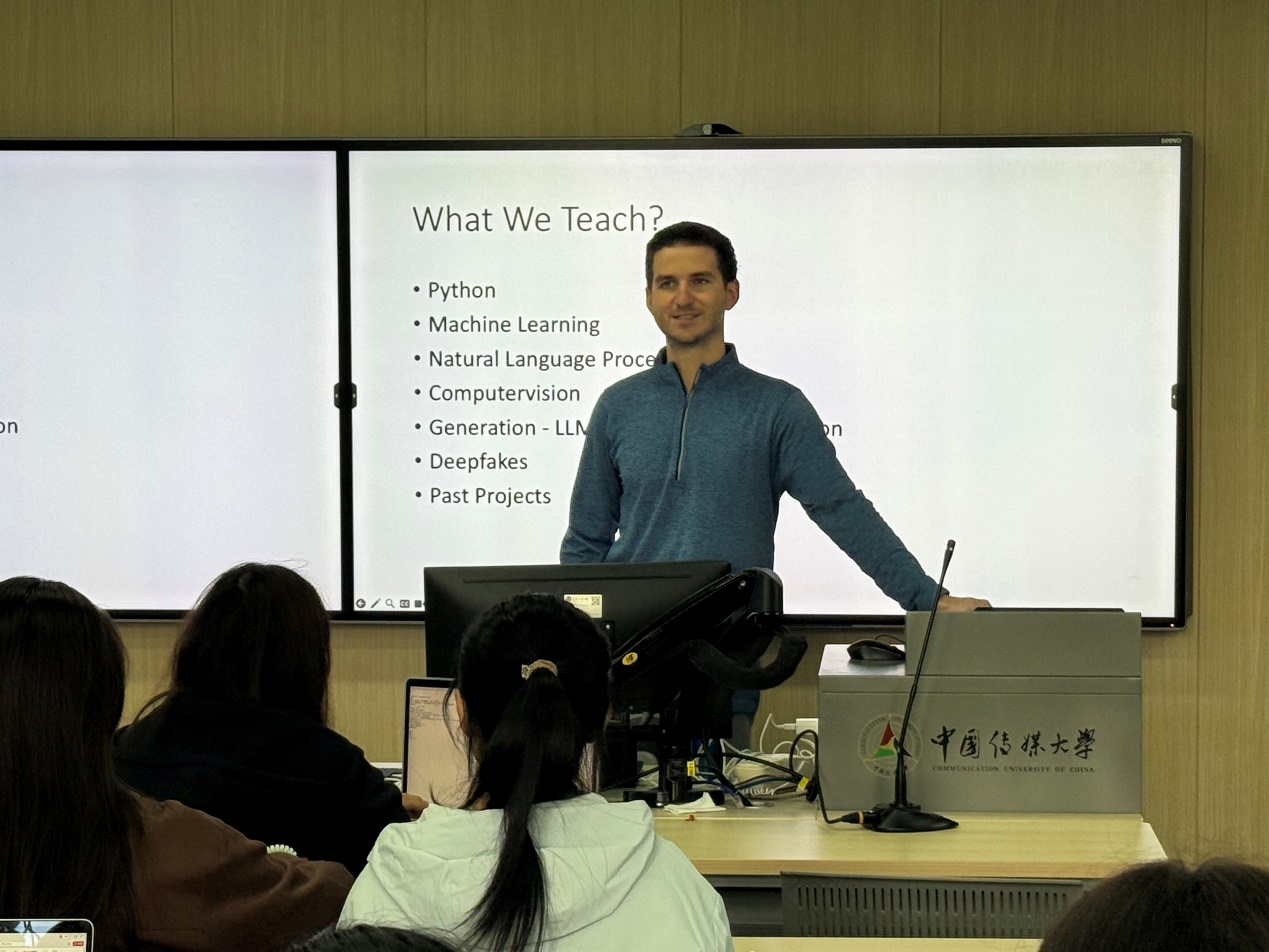 (通讯员 马汀怡摄影 任天威)为提升学生的AI素养,并使新生更好理解人工智能和机器学习在新闻传播中的应用,国际传媒教育学院与密苏里大学新闻学院联合举办了传播学新生专题讲座之“人工智能应用和深伪识别”。该讲座由密苏里大学卡莱布·海因茨曼博士主讲。 本次讲座内容涵盖Python编程、机器学习、自然语言处理、计算机视觉、生成式模型及深度伪造等多个关键领域,生动展示了AI如何重塑信息生产与传播方式。海因兹曼老师还展示了其团队开发的深伪检测平台“Deeptector.io”,该平台通过卷积神经网络与长短期记忆模型结合,实现对伪造视频的智能识别,准确率高达84%。在大数据人工智能高速发展的当下,虚假信息持续泛滥,不仅干扰公众认知,更对新闻真实性及社会信任体系构成严峻挑战。海因兹曼老师从专业的角度提醒大家应秉持对技术发展的信心,但也不能对技术乱象掉以轻心,引导大家思考从“技术向善”的方向使用技术,更好地为新闻传播而服务。 本次讲座有益启发新闻传播学科的新生应主动理解AI技术的底层逻辑,也要学会以更专业的视角应对 AI时代信息传播的新课题。