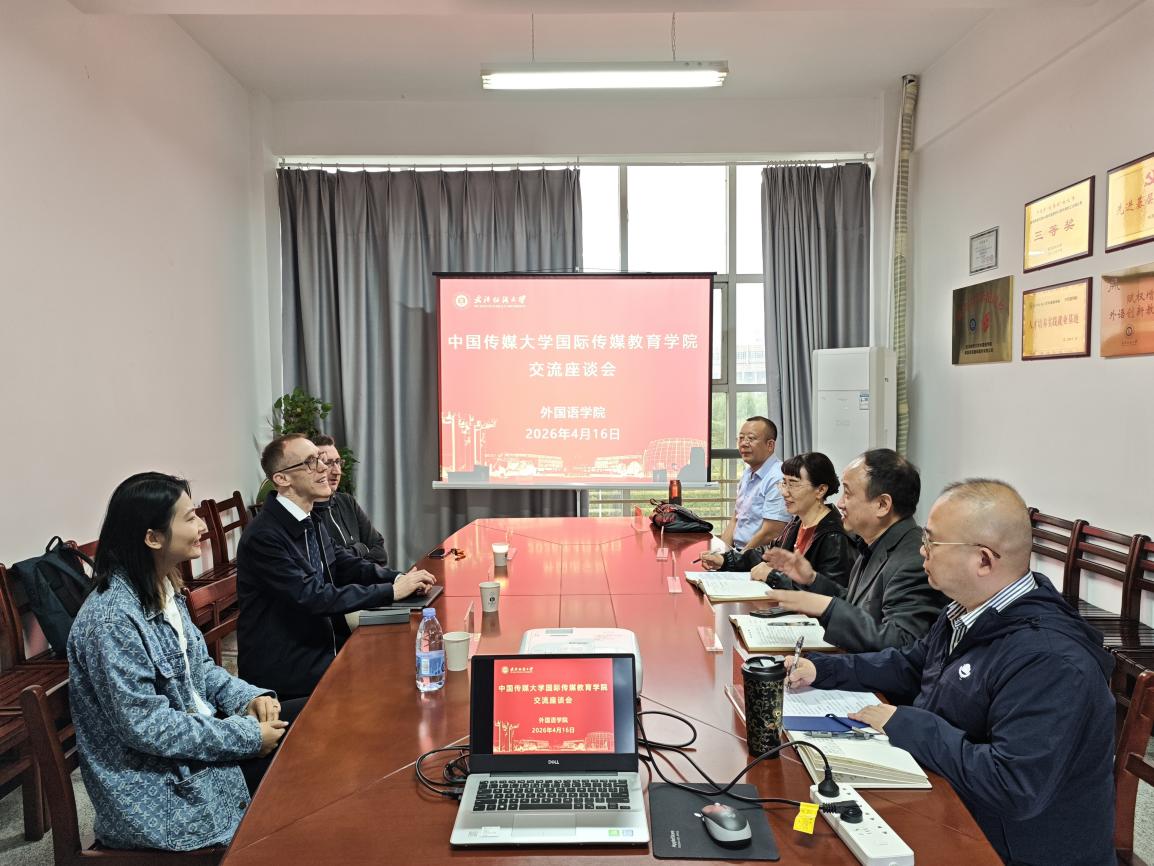 (通讯员 蔡静 周杨)为进一步加强校际合作,探索中外合作办学新模式,推动国际化人才培养高质量发展,中国传媒大学国际传媒教育学院中外教师团队分别赴武汉纺织大学、武汉大学开展调研交流活动。2026年4月16日,国际传媒教育学院中外教师团队赴武汉纺织大学外国语学院调研。外国语学院院长谭燕保、党委副书记彭阳慈航、副院长罗琦伦、副教授田禹等热情接待了中传一行。谭燕保院长介绍了外国语学院在学科建设、国际化办学及学生国际交流等方面的成果与特色。她表示,中国传媒大学国际传媒教育学院在中外合作办学领域积累了丰富经验,希望以此次调研为契机,推动两校在外语与传媒交叉学科领域的深度合作。中传教师代表分享了学院与英国诺丁汉特伦特大学合作办学的实践案例,并就课程共建、师资互访、学术资源共享等具体合作方向提出了建议。座谈会后,在外国语学院教师陪同下,中传教师团队受邀参观了武汉纺织大学纺织科技馆。下午,中传团队与武汉纺织大学外国语学院学生代表举行了见面交流会。会上,中传团队详细介绍了中国传媒大学与英国诺丁汉特伦特大学联合举办的中外合作办学硕士项目,涵盖项目背景、培养模式、课程设置、申请流程及就业前景等内容。学生们表