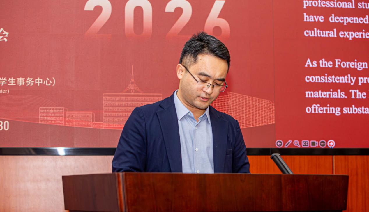 (通讯员 郭玥鑫 摄影 谢浩然 伊娃)2025年12月30日下午,由国际传媒教育学院(境外学生事务中心)主办的“‘翻开中国的这一年’——《中国年鉴2024》中国传媒大学国际学生交流活动”在中传学术中心成功举办。新华出版社党委委员、副总裁、《中国年鉴》编辑部主任沈建,编辑部编辑褚阳波;国际传媒教育学院党委书记龙俊、国际传媒教育学院(境外学生事务中心)院长金雪涛等学院教师代表,以及来自学校援外学历学位项目的二十余名学员代表共同参加交流活动。校党委常委、副校长杨懿在活动开始前亲切会见了沈建副总裁一行,并详细介绍了学校国际传播工作的开展及来华留学生培养情况。沈建介绍了新华出版社《中国年鉴》的编纂情况及对外人文交流平台建设。双方就未来的合作进行了充分的探讨。活动伊始,龙书记对新华出版社嘉宾的到来表示热烈欢迎并感谢新华出版社慷慨赠阅《中华人民共和国年鉴》(简称《中国年鉴》)。他指出《中国年鉴》是目前中国国内唯一的综合性国家年鉴,在这部立体鲜活的“中国年度备忘录”中,既有各领域发展的翔实数据,又有重大事件的全景记录,更有中国发展的脉搏与民生温度。他特别提到,在场许多来自援外学历项目的学员,一直