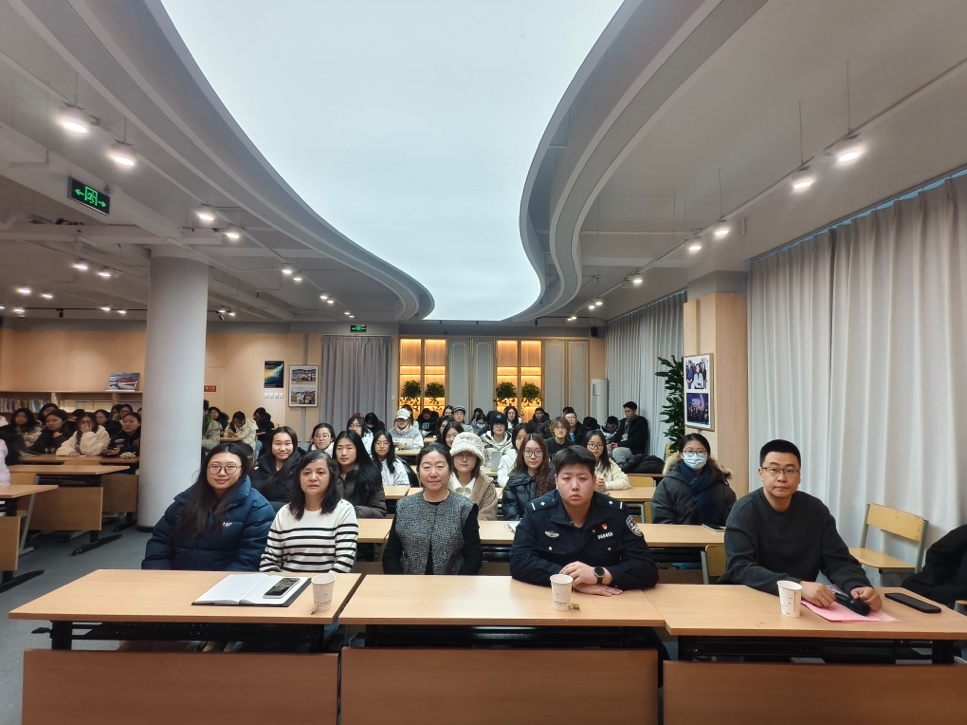 (通讯员 张靖怡 摄影 恽馨语)为筑牢安全防线,进一步提升学生安全防范意识,增强应对突发风险与违法事件的处置能力,12月10日,我院联合保卫部(处)、公共交通安全保卫总队四惠站派出所,共同组织开展安全教育主题讲座。活动邀请公共交通安全保卫总队四惠站派出所赵文睿警官现场授课,中国传媒大学保卫部(处)副部(处)长王靖芳出席指导,讲座由席明老师主持。学院党委副书记王娟、专职辅导员吴思瑜以及近百名同学参加讲座。 赵文睿警官首先聚焦诈骗的常见手法与邪教组织的隐蔽危害,通过真实案例解析,生动阐释了其社会影响与防范要领,引导同学们增强自我保护意识,掌握基本的风险识别与应急处置方法。 同时,赵警官结合“猎狼行动”的实战经验,细致讲解了在公交地铁等人员密集场所如何有效识别与应对不法行为,帮助同学们在日常出行中养成良好安全习惯,切实降低潜在风险。同时,赵警官还介绍了相关志愿服务项目,鼓励同学们在保障自身安全的前提下,积极参与公共交通安全治理,共同营造平安、有序、文明的出行环境。 国际传媒教育学院将持续推动安全教育常态化、制度化开展,引导学生树牢安全意识,提升风险防范能力,为平安校园建设和安全出行保