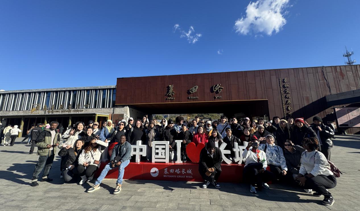 (通讯员 尹梦 摄影 谢浩然李可欣)十月的北京,秋日天高云淡、阳光明媚。为丰富境外学生的课余文化生活,增进境外学生对中华传统文化的直观了解与深层感知,2025年10月26日,境外学生事务中心组织百余名境外学生前往北京市怀柔区慕田峪长城,开展了一场别开生面、富有教育意义的文化参访活动。面对依山而筑、巍峨壮丽的古老长城,同学们难掩兴奋与赞叹之情。在中心老师的带领下,大家开始了登长城之旅。沿途蜿蜒起伏的城墙、雄伟的敌楼与层林尽染的秋色交相辉映,构成一幅幅壮丽的山河画卷。学生们纷纷举起相机与手机记录下这一刻,用镜头定格美景,也用脚步丈量历史,在攀登中切身感受长城作为世界文化遗产的宏伟气魄与深厚底蕴。攀登过程中,同学们互相鼓励、彼此扶持,展现出团结协作、积极向上的精神风貌。欢声笑语回荡在山谷之间,不同国家和文化背景的学子在交流与共同行动中,增进了了解,凝聚了友谊。参与学生普遍表示收获良多。此次慕田峪长城参访,是境外学生事务中心对境外学生“感知中国”系列活动的重要实践之一。以历史文化遗产为课堂,让境外学子在沉浸式文化探访中感悟中华文明的博大精深,体会古代中国人民的智慧与力量。活动不仅增强了同学们对